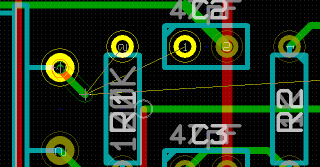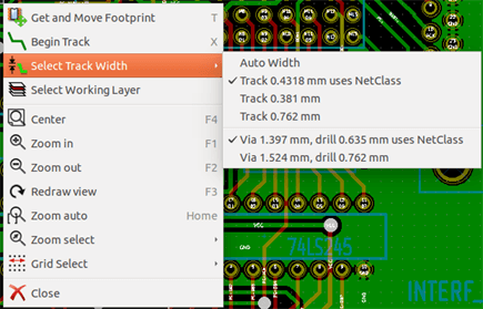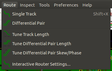An interactive router with multiple modes of operation (push-and-shove, walkaround, highlight collisions) and support for differential pair routing as well as length and skew tuning