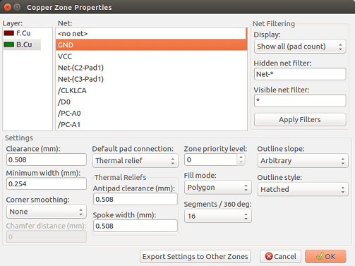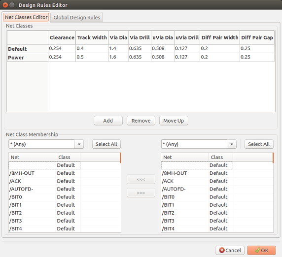 The KiCad PCB Editor is intended to communicate directly with the KiCad Schematic Editor for designing printed circuit boards from schematics without using any intermediate files. It can also import netlist files, which list all the electrical connections, from other packages.