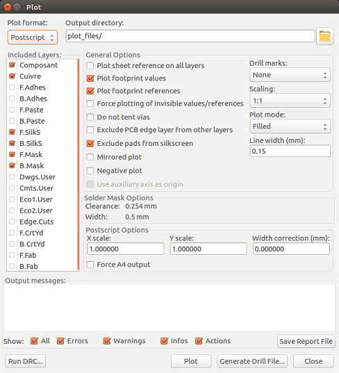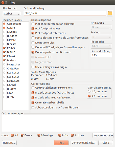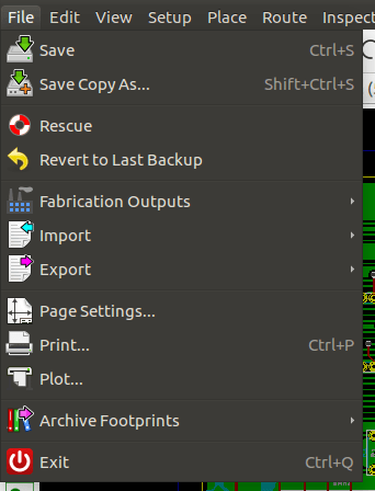 Export of fabrication and plot files in many formats (Gerber, IPC-2581, ODB++, GenCAD, PDF, PostScript, and SVG)