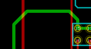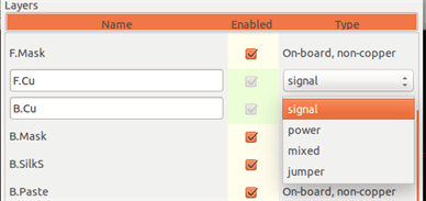 Layers in the PCB Editor represent physical copper layers on a board, as well as graphical layers used for defining things such as silkscreen, solder mask, and the board edge. There is always one layer that is active in the editor. The active layer is drawn on top of other layers and will be the layer assigned to newly-created objects. The active layer is indicated in the layer selector drop-down box in the top toolbar and is also highlighted in the appearance panel. To change the active layer, you can left-click a layer name in the appearance panel, use the drop-down layer selector in the top toolbar, or use a hotkey. Layers can be hidden to simplify the board view. You can hide a layer even if it is the active layer.