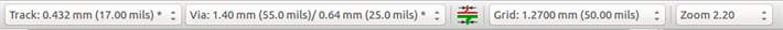 The editing canvas is a view onto the board being designed. You can pan and zoom to different areas of the board, and also flip the view to show the board from the bottom.