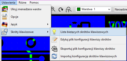 Zakładka Warstwy pozwala zarządzać widocznością oraz kolorem wszystkich wczytanych plików Gerber oraz plików wierceń. Zakładka Elementy pozwala zaś kontrolować sposobem wyświetlania siatki, kodami D-Code oraz obiektami negatywowymi.
