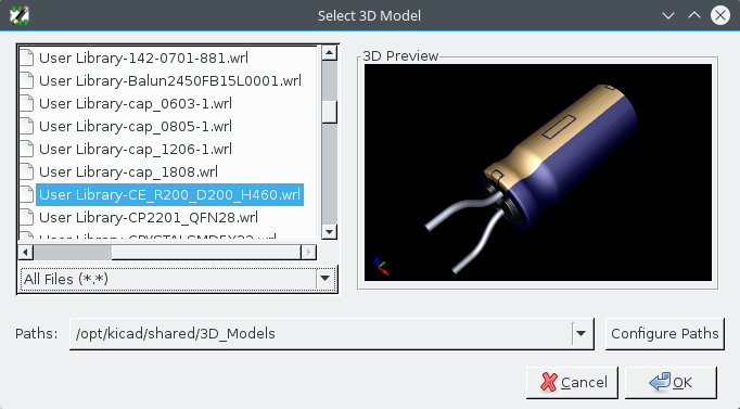 A 3D viewer and 3D model generation in many formats (STEP, GLB, BREP, XAO, PLY, STL, IDF, and VRML)