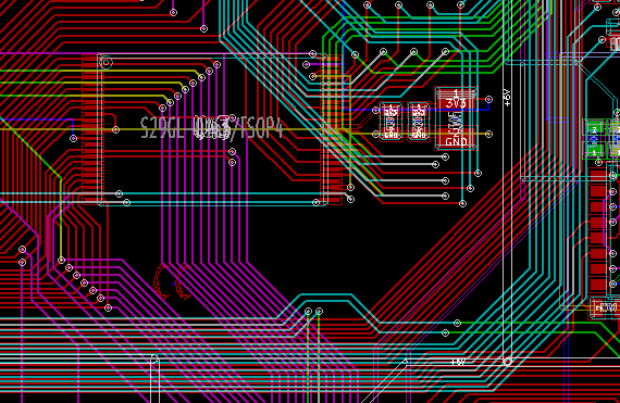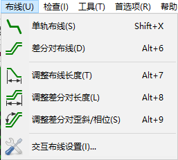 An interactive router with multiple modes of operation (push-and-shove, walkaround, highlight collisions) and support for differential pair routing as well as length and skew tuning