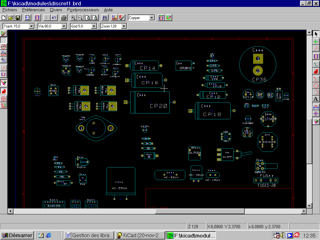 The KiCad PCB Editor is intended to communicate directly with the KiCad Schematic Editor for designing printed circuit boards from schematics without using any intermediate files. It can also import netlist files, which list all the electrical connections, from other packages.