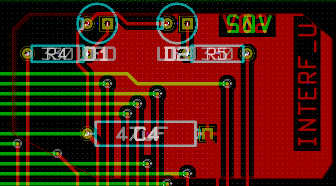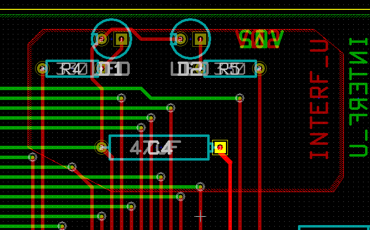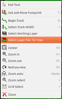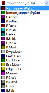 PCB 编辑器中的层代表电路板上的物理铜层,以及用于定义丝印、阻焊和电路板边框等的图形层。 在编辑器中,总有一个层是活动的。 活动图层绘制在其他图层之上,并将成为分配给新创建对象的图层。 活动层在顶部工具栏的图层选择器下拉框中显示,在外观面板中也被突出显示。 要改变活动层,你可以左键单击外观面板中的层名,使用顶部工具栏中的下拉层选择器,或使用快捷键。 图层可以被隐藏以简化电路板视图。 你可以隐藏一个层,即使它是活动层。