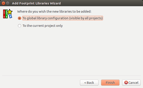 第一个选项是推荐的(复制默认的全局封装库表)。默认的封装库表包括所有作为 KiCad 的一部分安装的标准封装库。
